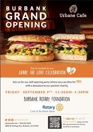 Tomorrow is our fundraiser at Urbane Cafe! If you can come out, please come and support our Burbank Rotary Foundation and support a new restaurant opening up in Burbank, Urbane Cafe.